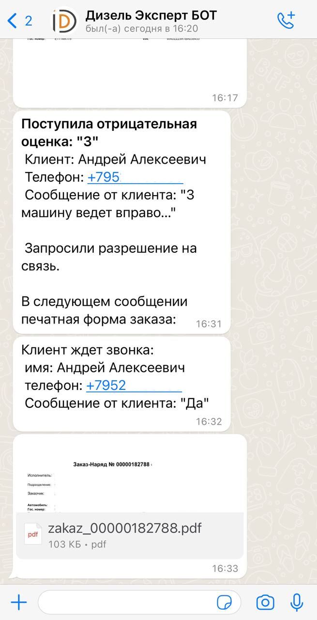 Ответственный(е) сотрудник(ки) получат оповещение в случае если клиент, который оставил плохую оценку, будет готов общаться с менеджером. Так же будет отправлена печ.форма заказа из CRM-системы по этому клиенту, чтобы было можно быстро ознакомиться с заказом.