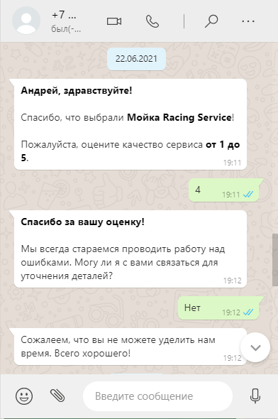 WhatsApp бот пишет клиенту, и он оставляет отрицательную оценку